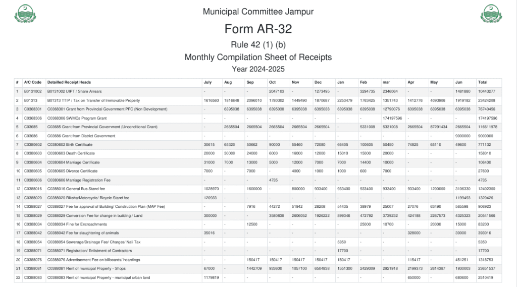 Monthly Receipts 2024-25 Details